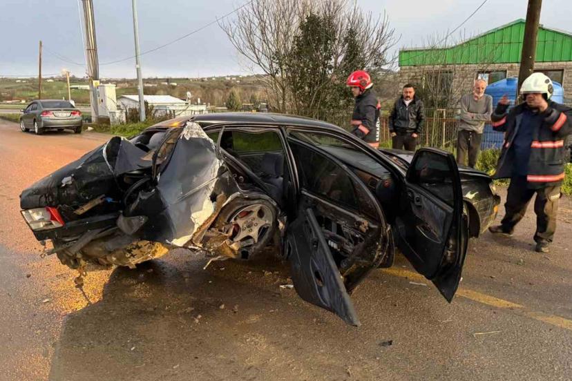 Sakarya’da yola aniden atlayan köpeğe çarpmamak için direksiyonu kıran otomobil sürücüsü, duvara çarptı.