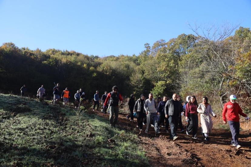 Körfez Belediyesi tarafından düzenlenen doğa yürüyüşü etkinliğinde öğrenciler ve ilçe protokolü bir araya geldi.