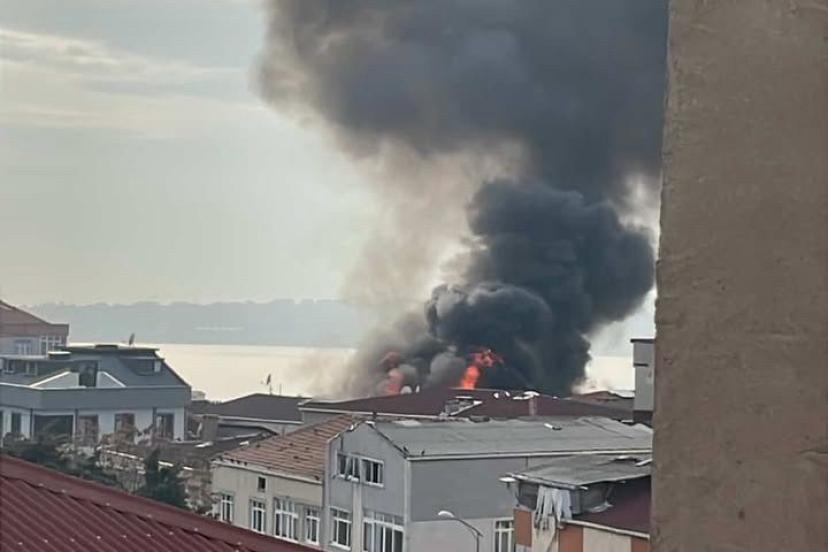 Küçükçekmece’de 4 katlı binanın çatı katından alevler yükseldi: O anlar kamerada