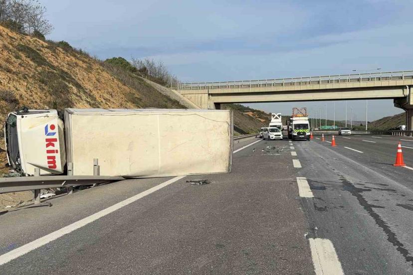 Kaza, Eyüpsultan Kuzey Marmara Otoyolu ışıklar gişeleri mevki üzerinde meydana geldi. Edinilen bilgiye göre, KİM isimli zincir markete ait olan İ.K. yönetimindeki 34 LVE 13 plakalı kamyon, önünde seyreden yine aynı firmaya ait E.A. yönetimindeki 34 LR 4844 plakalı kamyona çarptı. Çarpmanın etkisiyle kamyon refüje devrildi. Savrulan araç, bu sırada seyir halinde olan B.E. yönetimindeki 55 AUA 25 plakalı tıra da çarptı. Tır kazadan ufak maddi hasarla kurtuldu.
