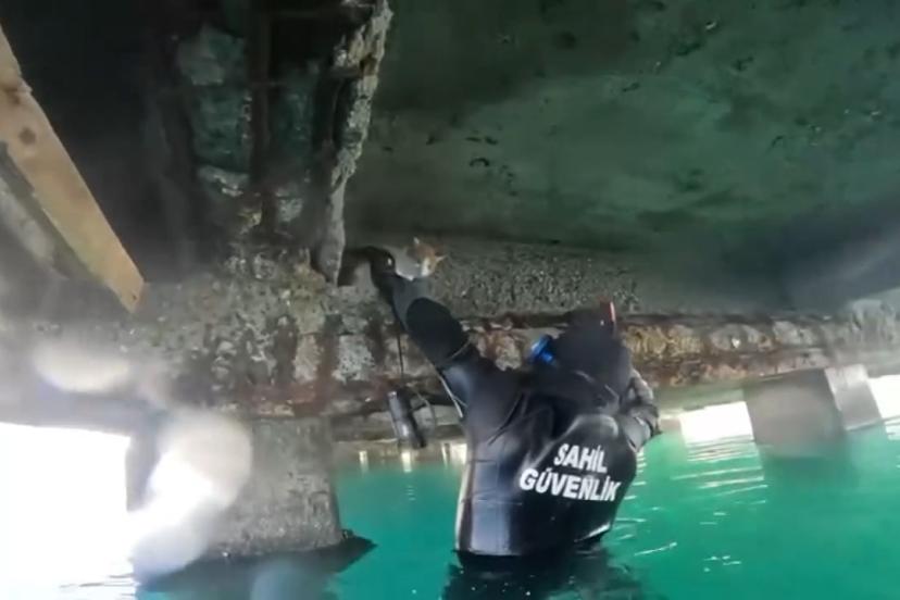 Balıkesir’in Edremit ilçesinde, denizin kenarındaki iskelenin altında mahsur kalan kedi, Sahil Güvenlik Komutanlığı’na bağlı balık adamların gerçekleştirdiği operasyonla kurtarıldı. O anlar balık adamların kafa kameralarına saniye saniye yansıdı.