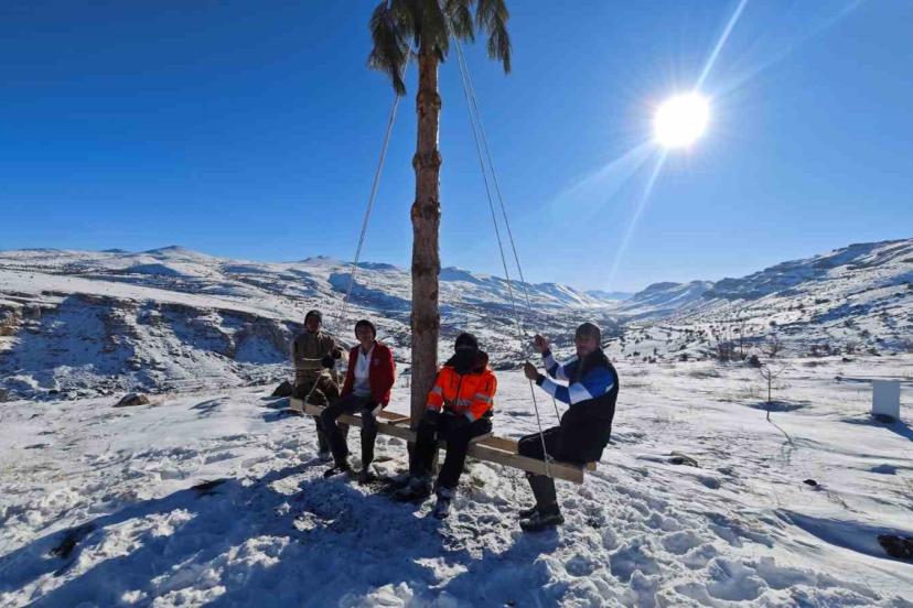 Dört kafadar arkadaş, kurdukları salıncak üzerinde de vakit geçirerek kış mevsiminin tadını doyasıya çıkardıklarını belirtti.