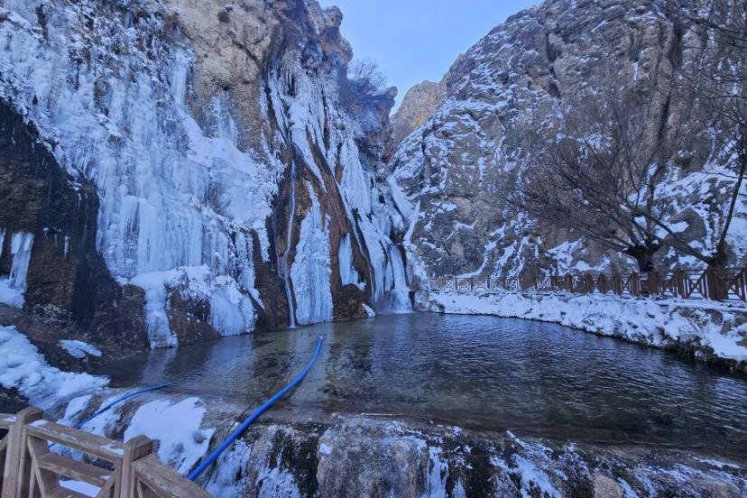 Donan şelaleyi görmek isteyen çok sayıda vatandaş bölgeyi ziyaret ederek kısmen buz tutan şelalenin ortaya çıkardığı görsel şöleni hayranlıkla izledi.