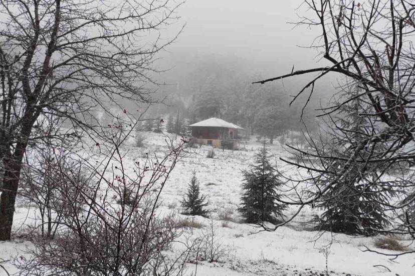 Manisa’nın yüksek kesimlerinde kartpostallık kar manzaraları