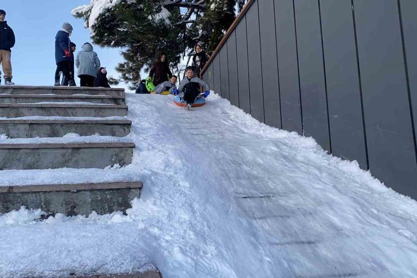 Bolu’da hafta boyunca etkili olan kar yağışı sebebiyle kar kalınlığı şehir merkezinde 65 santimetreyi geçti. Hafta boyunca 1 Ocak resmi tatil hariç, diğer günlerde Bolu Valiliği tarafından okullar tatil edildi. Okulların tatil olmasını ve kar yağışını fırsat bilen çocuklar, şehrin birçok noktasını kayak pistine çevirdi. Ellerine şambrel, poşet ve kızaklarını alan minikler, tepe noktalarda kayarak karın keyfini çıkardı. İzzet Baysal Caddesi Kent Meydanın’da merdivenleri dolduran kar sebebiyle rampayı kayak pisti olarak kullanan çocuklar doyasıya eğlendi.