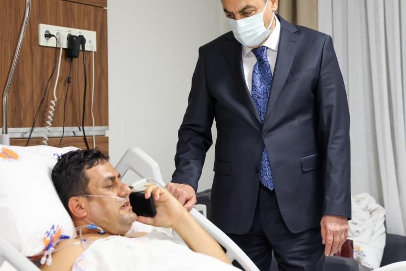 Mersin Valisi Atilla Toros, servise alınan Ender Kara'yı ziyaret etti.