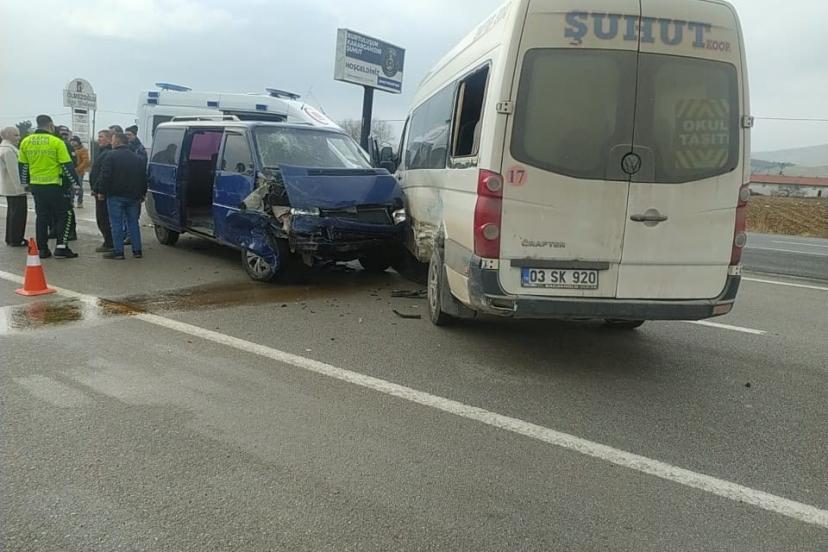 Afyonkarahisar’da biri yolcu minibüsü olmak üzere 2 minibüsün çarpışması sonucu yaşanan trafik kazasında 7 kişi yaralandı.