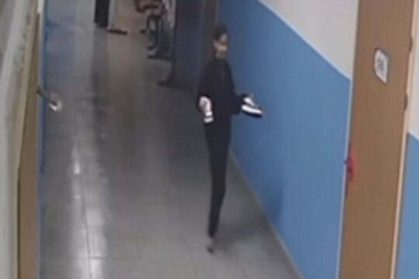 Bu anlar, temizlik görevlisinin şaşkın bakışlarıyla birlikte okulun güvenlik kameralarına yansıdı.