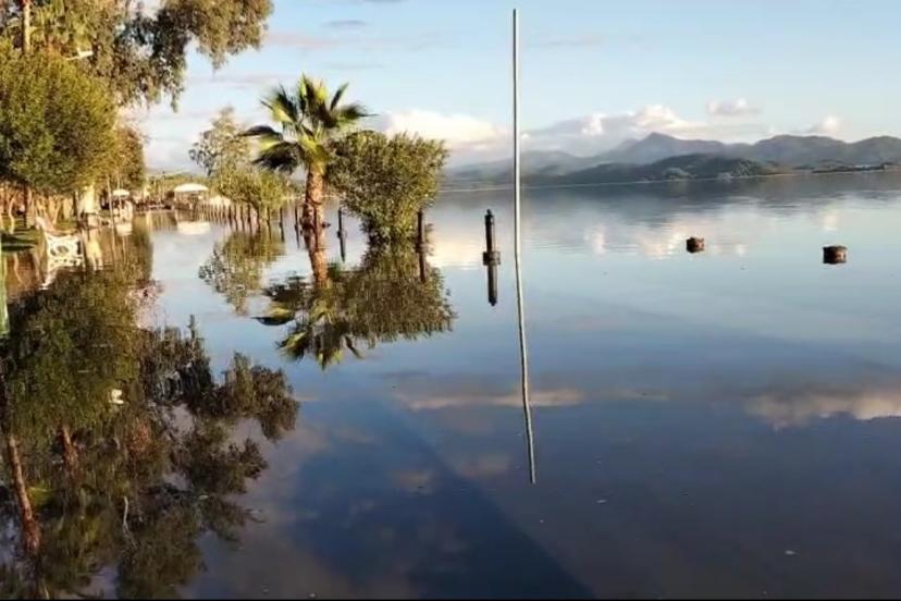 Muğla’nın Köyceğiz ilçesinde birkaç gündür aralıksız devam eden yağışlar sonrası Nam Nam Çayı, Kargıcak ve Yuvarlak Çayı’nın debisi yükselince taşan sular Köyceğiz Gölü’nde su seviyesini artırırken, Atatürk Kordonu’nun batı kısmı ile Delta Plajı sular altında kaldı.