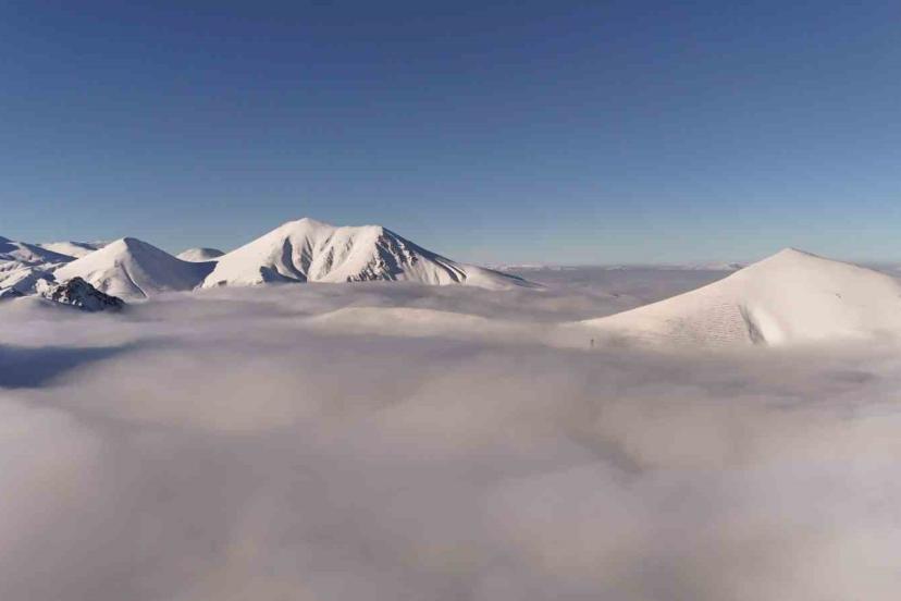 Erzurum’da 3 bin 125 rakımı ile adeta bir doğa harikası olan Palandöken Dağı, sislerin içinde kayboldu.