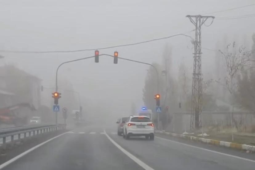 Ağrı’nın Patnos ilçesinde sabah saatlerinde etkisini artıran yoğun sis, ilçe genelinde ulaşımı aksattı.