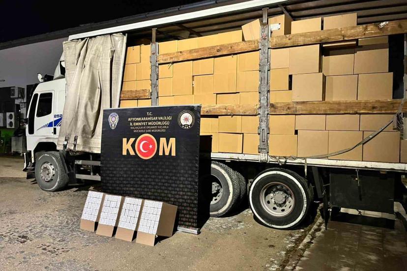 Afyonkarahisar’da şüphe üzerine durdurulan bir kamyonda 6 milyon 190 bin adet sahte bandrollü boş Makaron ele geçirildi.