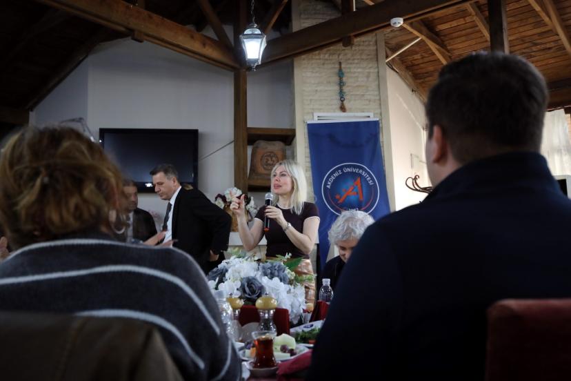 Topluluk başkanlarıyla bir araya geldiği için mutlu olduğunu söyleyen Rektör Prof. Dr. Özkan, "Ben öğrencilerimizi sadece üniversitenin bir parçası olarak değil, bu kurumun nefesi, enerjisi ve geleceği olarak görüyorum. Hepinizin ayrı bir hikâyesi, ayrı bir mücadelesi, ayrı bir hayali var. Ve bilin ki biz bu üniversitede sizi yalnızca akademik donanımla mezun etmeyi değil, hayata güçlü bir şekilde hazırlamayı sorumluluk biliyoruz" şeklinde konuştu.