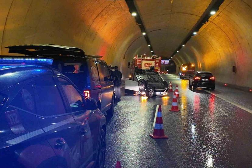 Sağanak yağış kazayı beraberinde getirdi: Tünel’de takla attı