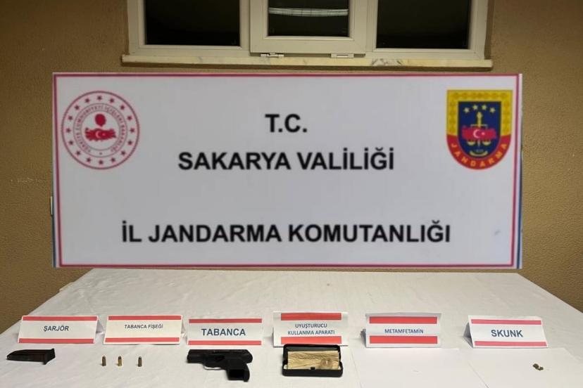Cumhuriyet Savcılığı koordinesinde Sakarya İl Jandarma Komutanlığı ekiplerince "uyuşturucu ve uyarıcı madde imal ve ticareti" suçu kapsamında gerçekleştirilen operasyonlarda, B.Ç. (48) ve M.Z.Ö. (41) isimli şahıslar gözaltına alındı. Şahısların üzerlerinde, ikametlerinde ve araçlarında yapılan aramalarda, 1 gram sentetik kannabinoid ham maddesi, 100 ml uyuşturucu madde yapımında kullanılan A-M maddesi ile karıştırılmış aseton, 45 gram bonzai, 2 adet uyuşturucu kullanma aparatı, 1 gram metanfetamin maddesi, 1 gram olarak paketlenmiş kubar esrar, 1 adet 7,65 mm çapında tabanca, şarjör ve 3 adet fişek ele geçirildi.