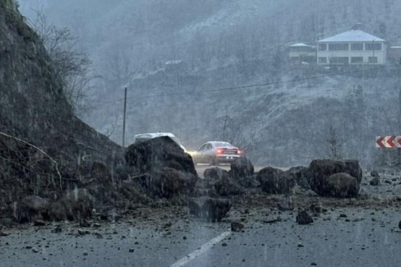 Trabzon’un Şalpazarı-Beşikdüzü karayolunda dün akşam saatlerinde başlayan yoğun yağmur ve ardından etkili olan kar yağışı nedeniyle heyelan meydana geldi.