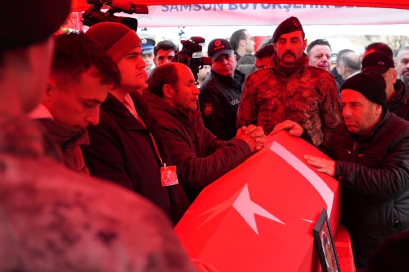 Törenin sonunda özel harekat polisleri şehidin Türk bayrağına sarılı tabutunu omuzlayarak cenaze aracına kadar taşıdı.
