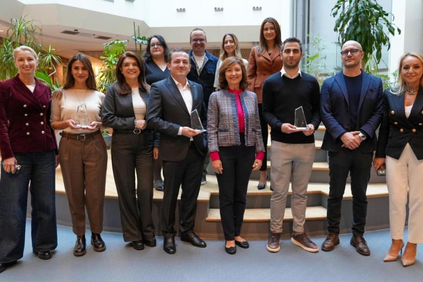 Eğitimi başarıyla tamamlayan kadınlar, Microsoft Türkiye ofisinde düzenlenen mezuniyet töreninde sertifikalarını aldılar.