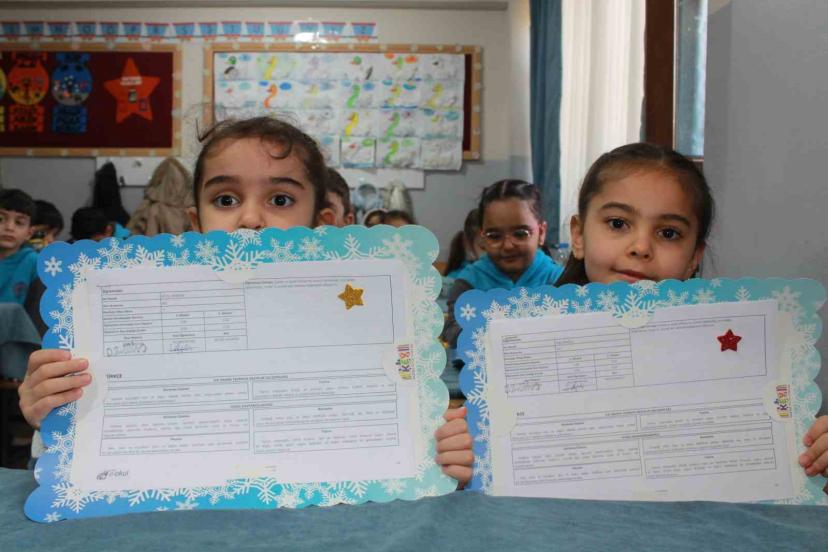 Öğrencilerden Fatma Zehra Ekin (7), okulu çok sevdiğini, karnesinin çok güzel olduğunu söyledi.