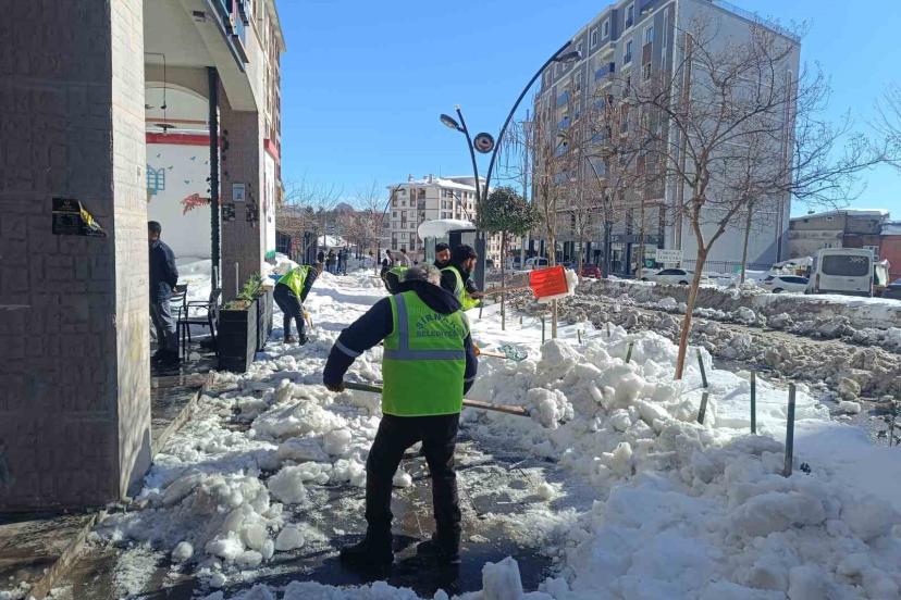 Şırnak’ta etkili olan kar yağışının ardından kent genelinde belediye ekiplerince kaldırımlar kürekle temizlendi.