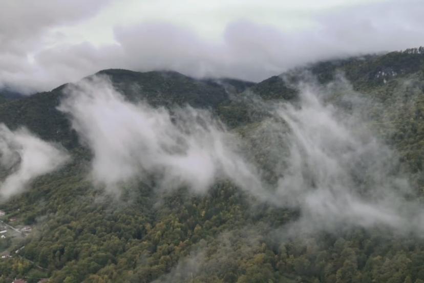 Ilgaz Dağı’nda sis ve yeşilin buluşmasında ortaya çıkan manzara havadan görüntülendi.