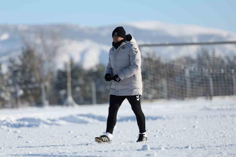Teknik Direktör Mehmet Altıparmak yönetiminde kulüp tesislerinde sıfırın altında 15 derece hava sıcaklığında yapılan idman, ısınma hareketleriyle başladı. Ardından pas ve top koruma çalışmaları yapan kırmızı-beyazlı ekip, antrenmanı duran top ile tamamladı.