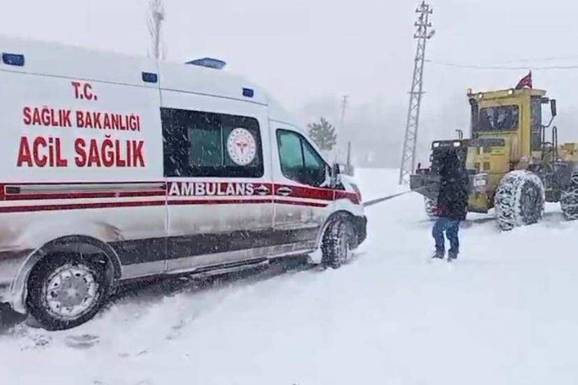 Sivas’ta yaşadığı köyde rahatsızlanan hamile kadına ulaşmak için ekipler seferber oldu. İl Özel İdaresi ekipleri karla kaplı yolu açarak ambulansın hastaya ulaşmasını sağladı.