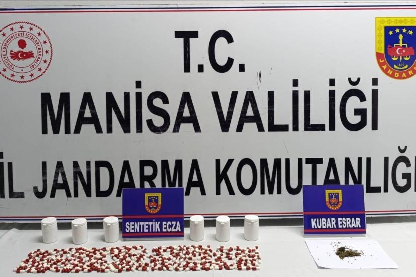 Manisa’nın Soma ilçesinde jandarmanın uyuşturucuya geçit vermediği operasyonda yüzlerce sentetik ecza ele geçirilirken, adliy...