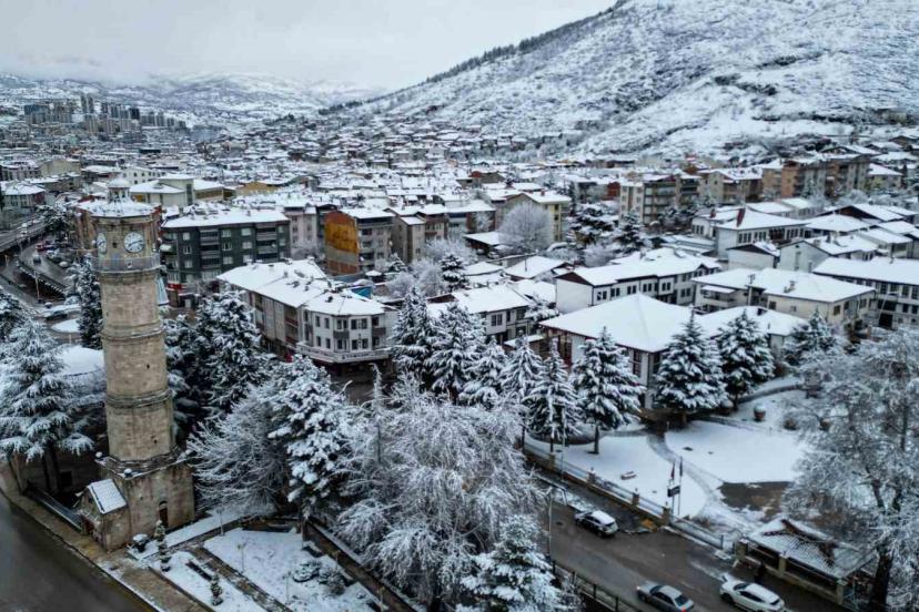 Kent merkezinde 900 adımda 900 yıllık tarihi gezme imkânı sunan Sulusokak’ta, 11’inci yüzyıldan 19’uncu yüzyıla kadar uzanan birçok döneme ait eserler bir arada bulunuyor. Osmanlı, Selçuklu ve Danişmendli gibi birçok medeniyetin izlerini taşıyan tarihi yapılar; kar yağışıyla birlikte görsel bir şölen sundu. Yerli ve yabancı turistlerin ilgisini çeken bölgedeki beyaza bürünen saat kulesi, konaklar, camiler, medreseler ve tarihi sokaklar dron ile havadan görüntülendi. Ortaya çıkan manzara, Sulusokak’ın dört mevsim ayrı bir güzelliğe sahip olduğunu bir kez daha gözler önüne serdi. Tarih ve doğanın iç içe geçtiği Sulusokak, kış mevsiminde de Tokat’ın en dikkat çeken noktalarından biri olmayı sürdürüyor.