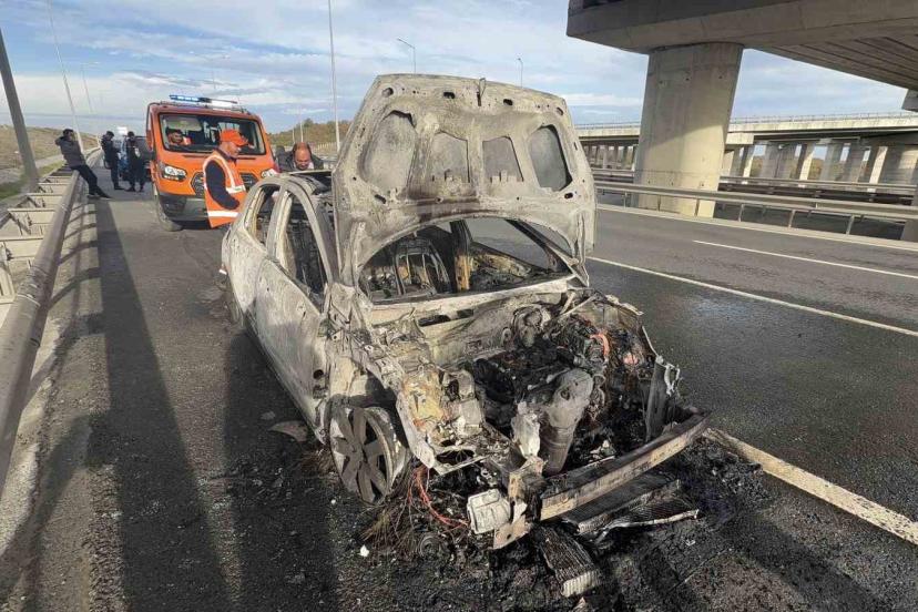 Hasdal-Kemerburgaz Otoyolu Tayakadın mevkiinde, seyir halinde olan bir otomobil, henüz belirlenemeyen bir nedenle alev aldı.