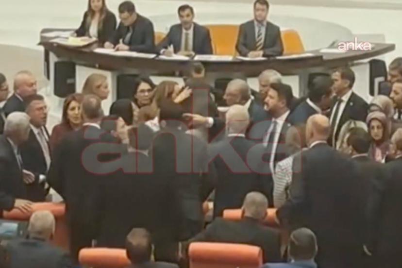 Söz almaların ardından iki partinin vekilleri arasında arbede yaşandı. O anlar kameralara yansıdı.