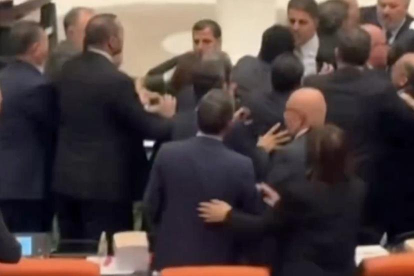 İki partinin sıralarından çok sayıda milletvekili kavgaya dahil oldu, salonun ortasında büyük bir arbede yaşandı.