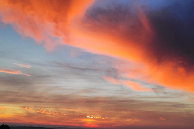 Tekirdağ’ın Muratlı ilçesinde Balabanlı Mahallesi’nde akşam saatlerinde ortaya çıkan renk şöleni, gökyüzünü izleyenlere görsel bir ziyafet sundu. Turuncu, pembe ve mor tonlarının hâkim olduğu etkileyici gün batımı, sosyal medyada da büyük ilgi gördü.