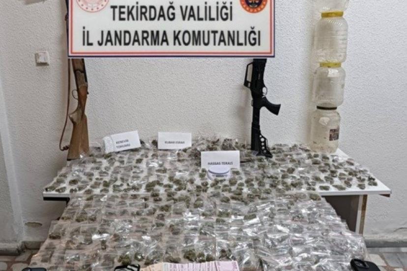 Tekirdağ İl Jandarma Komutanlığı ekiplerince Marmaraereğlisi ilçesinde düzenlenen operasyonda satışa hazır kubar esrar, kenevir ve ruhsatsız silahlar ele geçirildi.