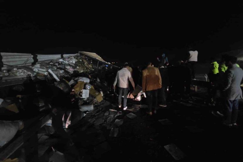 Tekstil malzemesi yüklü tır devrildi: Yol trafiğe kapandı