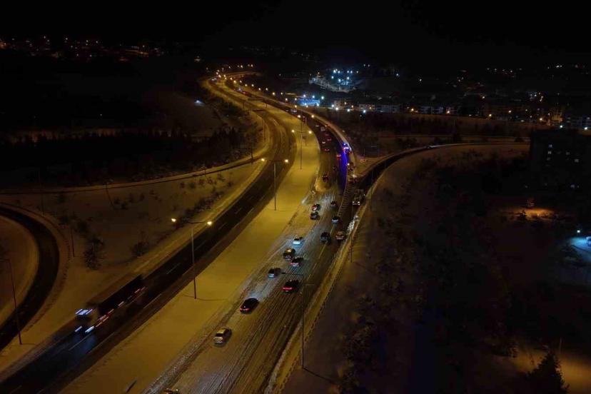 Saatlerdir yapılan çalışmalar sonucunda yolda kalan araçlar kaldırıldı. Trafik her iki şeritten de sağlanmaya başlandı. Yolun ulaşıma açılmasıyla birlikte biriken araç trafiği havadan görüntülendi.