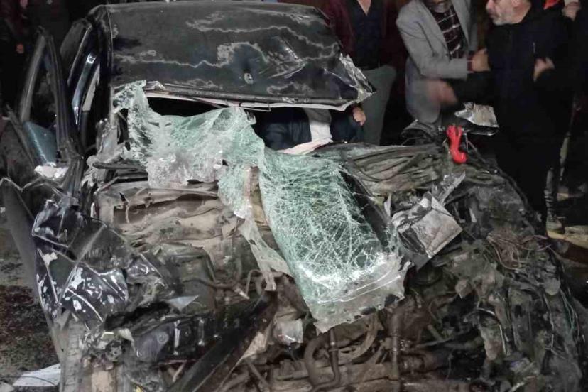 Tırın dorsesine çarpan otomobil hurda yığınına döndü: Sıkışan sürücü güçlükle kurtarıldı