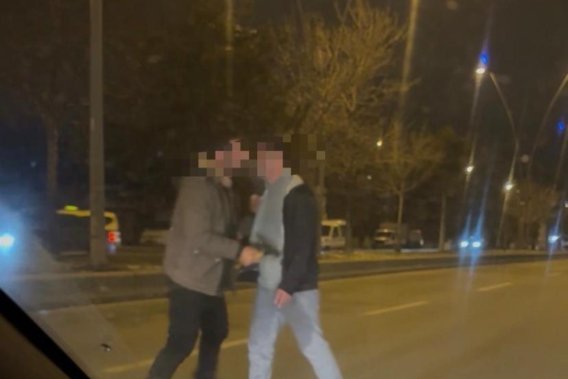 Kayseri’nin Kocasinan ilçesinde alkollü olduğu iddia edilen bir şahıs, ağaç yüklü bir tırın önüne geçerek gitmesine izin vermedi. Trafiği kilitleyen şahsı yakınları güçlükle kaldırıma çekti.