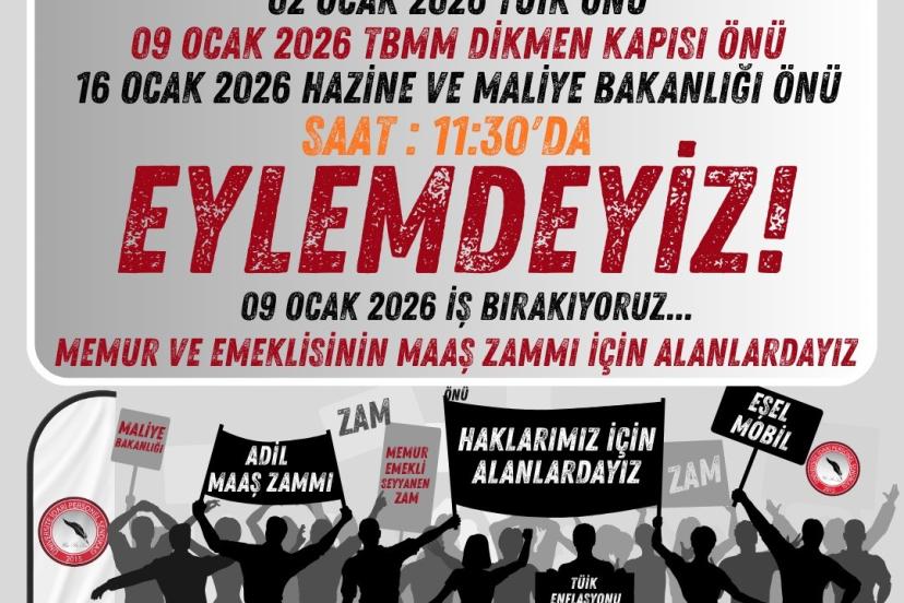 Eylemlerin saat 11.30’da yapılacağı ifade edilirken, 9 Ocak 2026 tarihinde memur ve emeklilerin iş bırakma eylemi gerçekleştireceği duyuruldu.