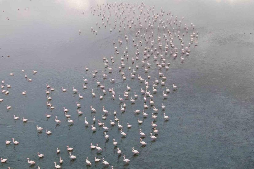 Urmiye Gölü kuruyunca flamingolar Van’a akın etti