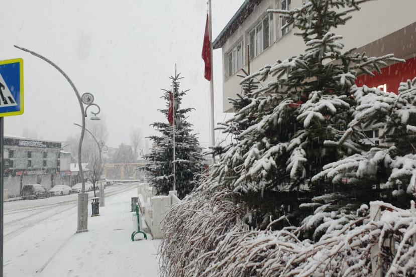 Akşam saatlerine doğru lapa lapa yağan kar ile ilçe merkezi kısa sürede beyaza bürüdü.
