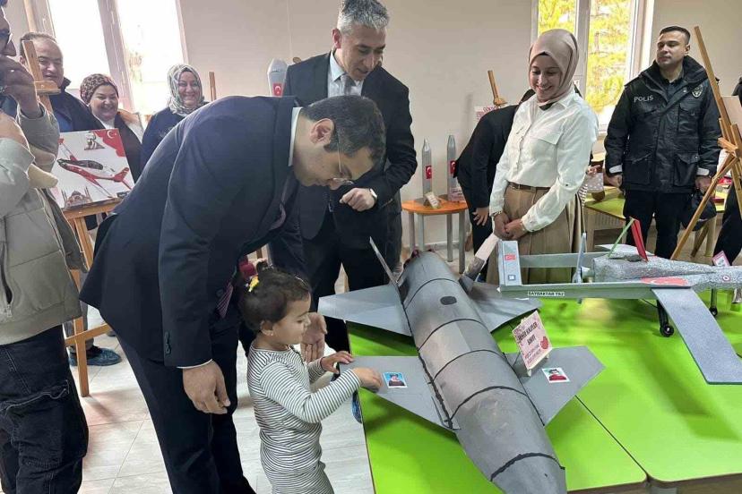 Konya’nın Bozkır ilçesinde anaokulu öğrencileri, Yerli Malı Haftası etkinliğinde Türkiye’nin yerli üretimi olan çeşitli savunma sanayi ürünlerinin maketlerini ailelerinin desteği ile hazırlayarak sergiledi.