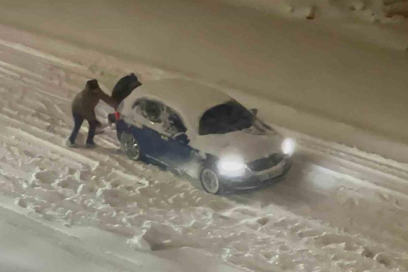 Elazığ’da yolda kalan araçlar, vatandaşlar tarafından el birliğiyle itilerek bulundukları yerden çıkarıldı. Araçları itenler arasında kadınlar da yer aldı.